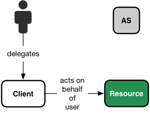 OAuth 2.0 was designed to solve the problem of a delegated access to resources across services, mediated by an authorization server, as shown in the following picture: