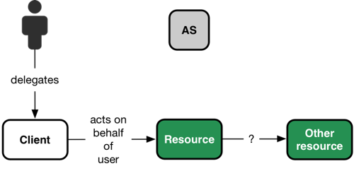There are scenarios when a resource server, in order to satisfy a client request, needs to access resources hosted by other downstream services on behalf of the user, like in the following picture: