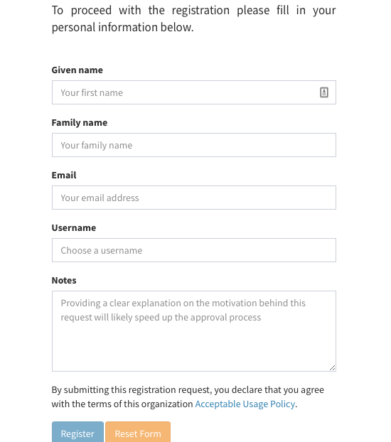 Once defined the AUP text is shown to users for acceptance either at registration time: